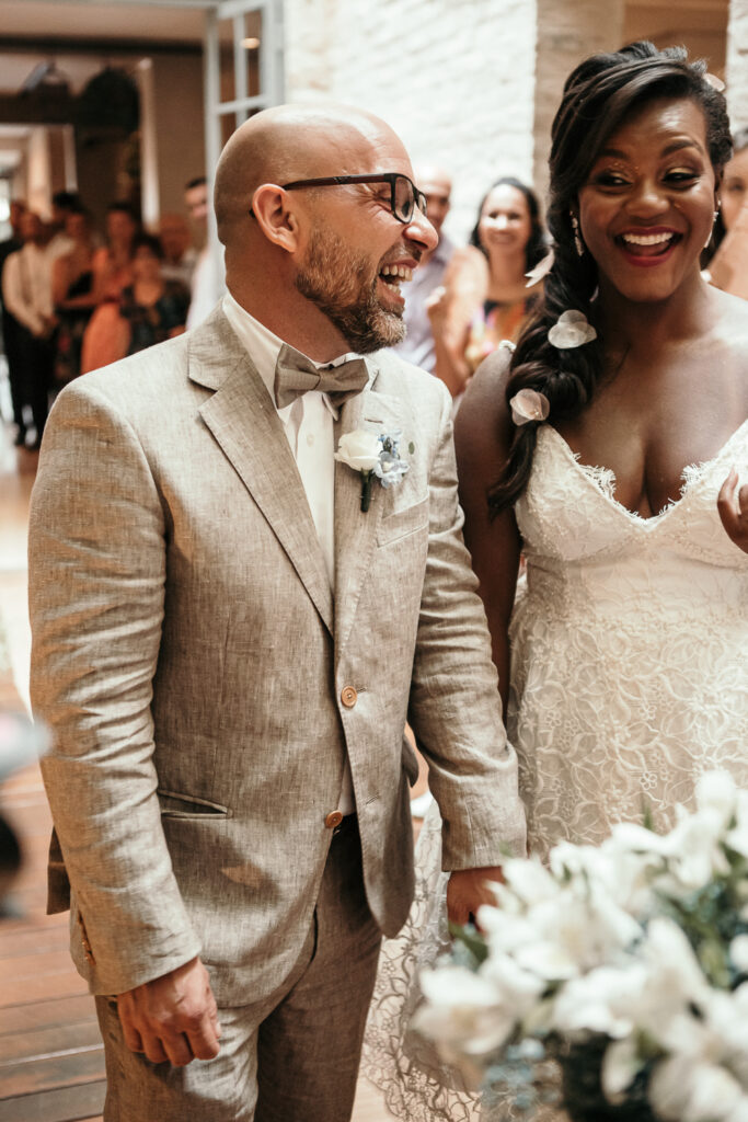 A decoração, assinada por Leivas Lourenço, trouxe um toque de elegância e harmonia ao espaço, complementando perfeitamente a beleza natural da Casa Quena. O make, realizado pelo Ateliê Ju Senna, realçou a beleza da noiva, que estava deslumbrante e radiante em seu dia especial.